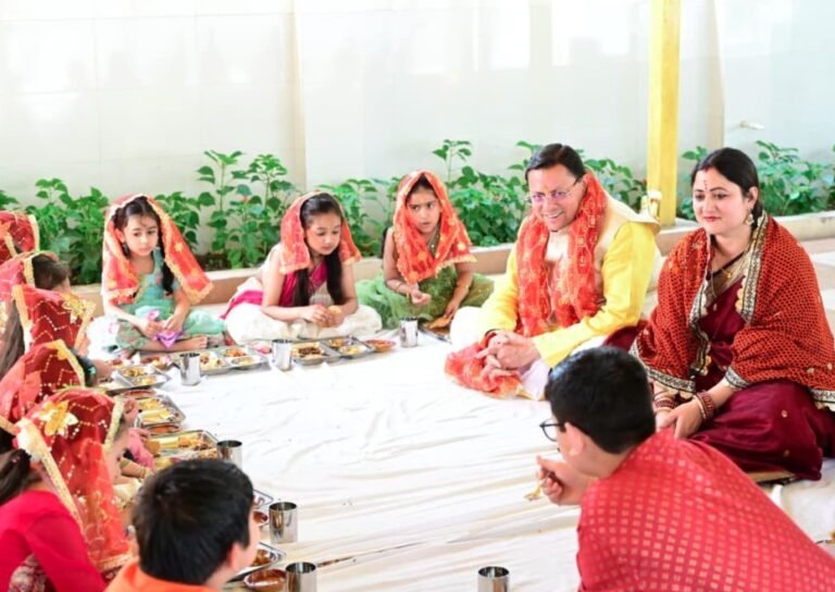 देहरादून। रामनवमी के शुभ अवसर पर मुख्यमंत्री आवास में मुख्यमंत्री पुष्कर सिंह धामी ने कन्या पूजन कर देवी स्वरूपा बालिकाओं का सम्मान किया। इस दौरान उन्होंने पारंपरिक रीति-रिवाजों के अनुसार कन्याओं को भोजन कराया तथा उनका आशीर्वाद प्राप्त किया।