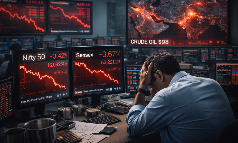 मुंबई – भारतीय शेयर बाजारों के लिए गुरुवार की शुरुआत बेहद खराब रही, जहाँ शुरुआती कारोबार में ही बीएसई (BSE) सेंसेक्स और एनएसई (NSE) निफ्टी50 धराशायी हो गए। सेंसेक्स 800 से अधिक अंक टूटकर 76,000 के स्तर के आसपास आ गया, जबकि निफ्टी50 खुलने के कुछ ही मिनटों के भीतर 200 से अधिक अंक गिरकर 23,650 के पास संघर्ष करता दिखा। यह भारी गिरावट बुधवार के उतार-चढ़ाव भरे सत्र के बाद आई है, जिसमें बाजारों ने अपना लगभग 2 प्रतिशत मूल्य खो दिया था। यह पश्चिम एशिया में बढ़ते संकट और वैश्विक अर्थव्यवस्था पर इसके पड़ने वाले प्रभावों को लेकर निवेशकों के बीच गहरी चिंता का संकेत है।