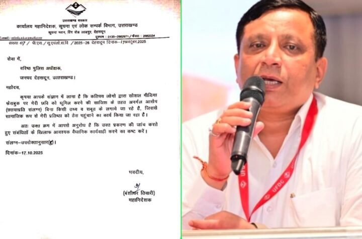 देहरादून। राज्य के महानिदेशक सूचना बंशीधर तिवारी ने सोशल मीडिया पर उनके खिलाफ चल...