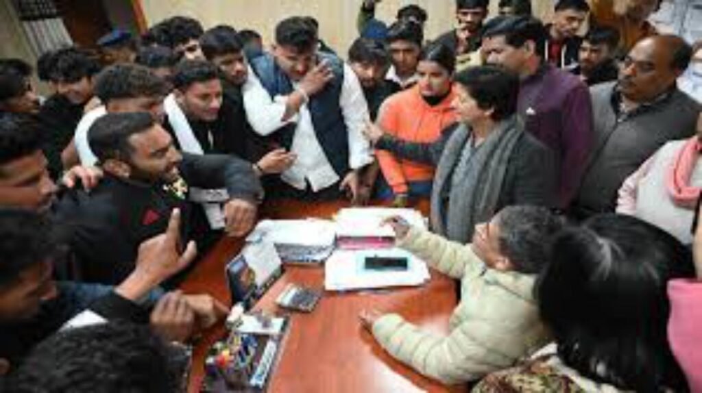 कोई आश्वासन नहीं मिलने पर छात्र आक्रोशित हो उठे। उन्होंने चुनाव में देरी तथा बीते एक माह से कुलपति के विश्वविद्यालय से बाहर होने पर कड़ी नाराजगी व्यक्त करते हुए जमकर नारेबाजी की। आनन फानन में प्रभारी कुलपति प्रो संतोष कुमार को बुलाया गया। फिर भी छात्र शांत नहीं हुए।